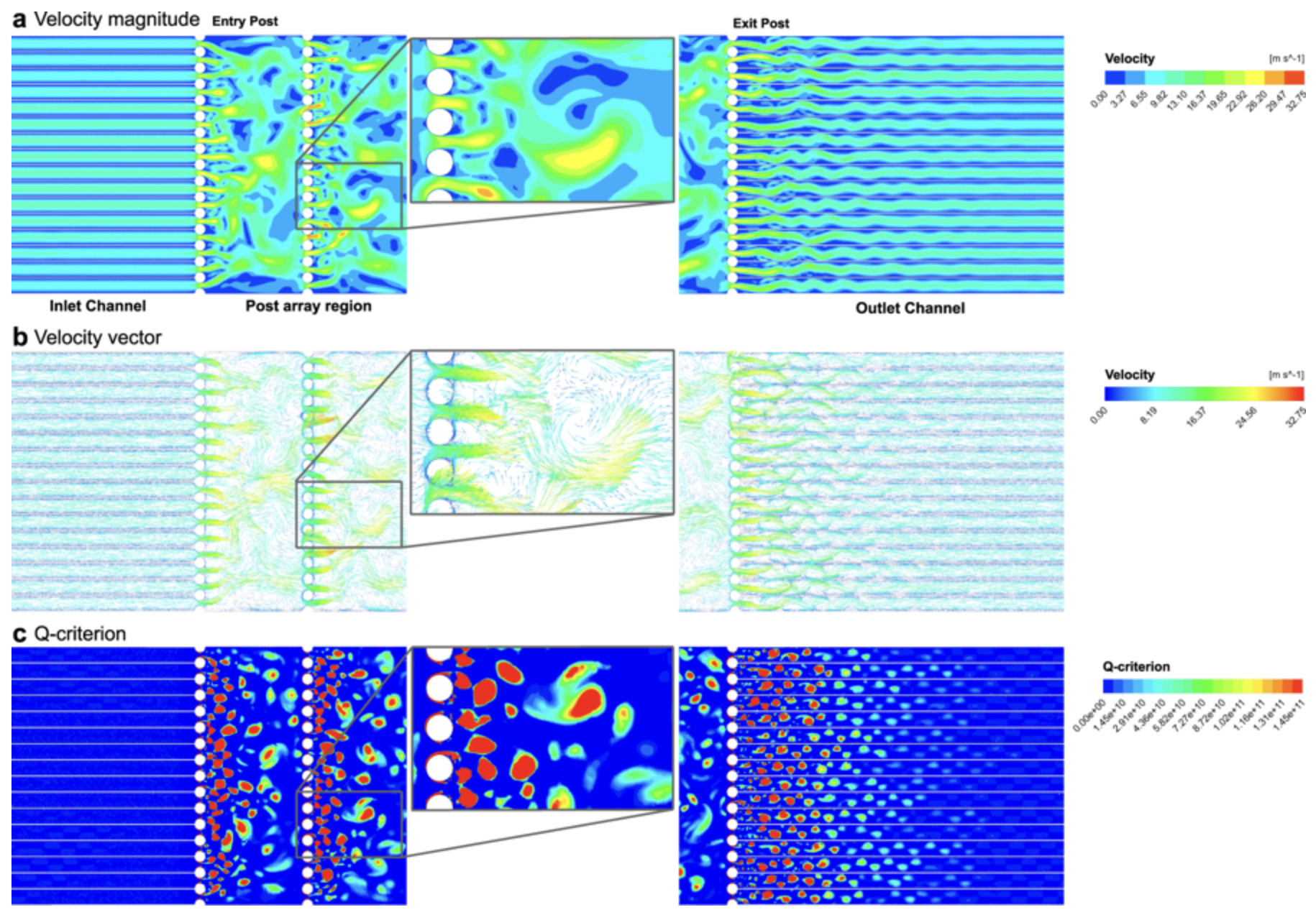 Computational fluid dynamic simulation of in-chip microfluidic vortex shedding [28].